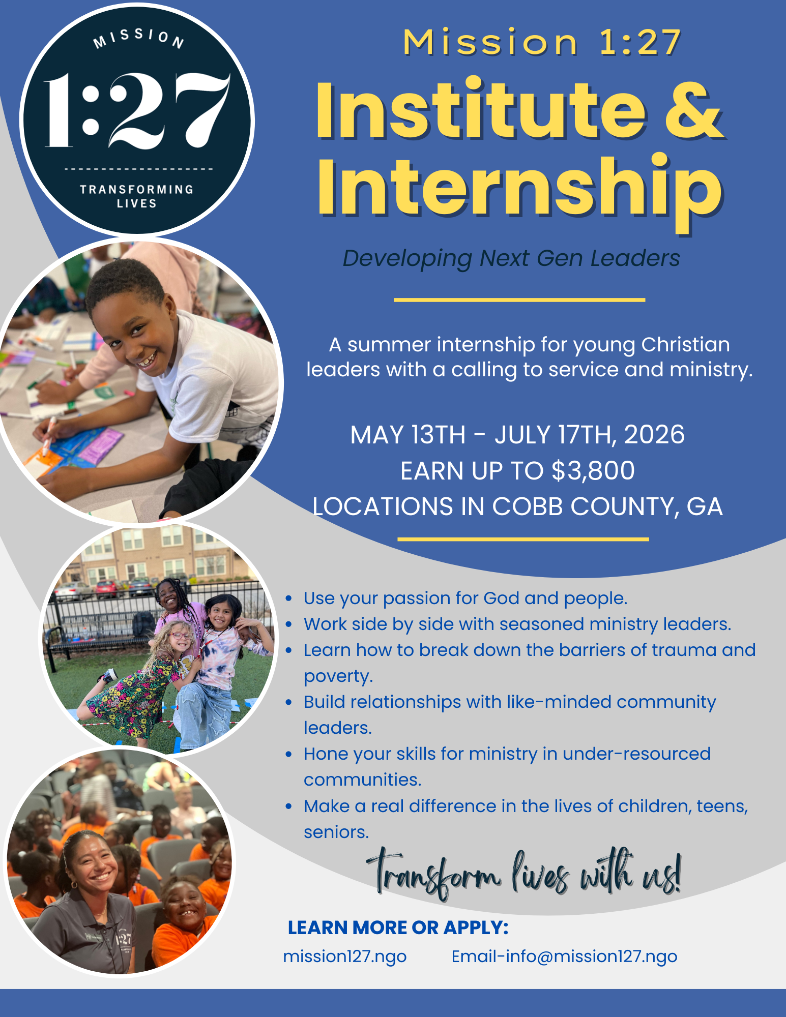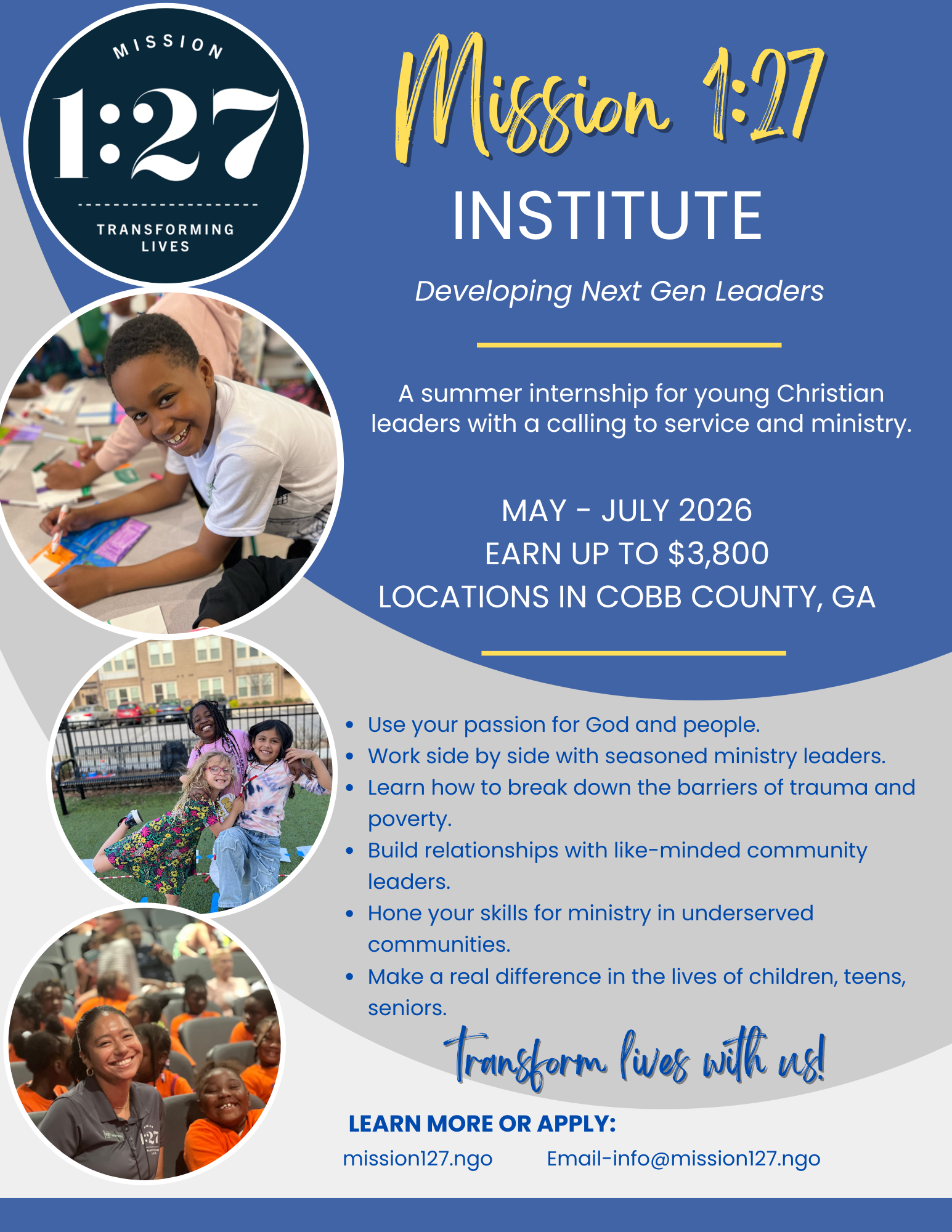 Apply to be a part of our inaugural Mission 1:27 Institute!